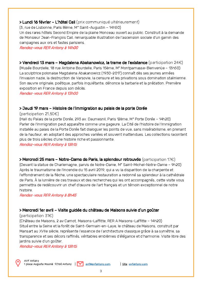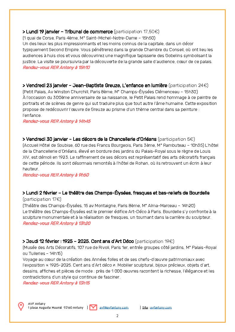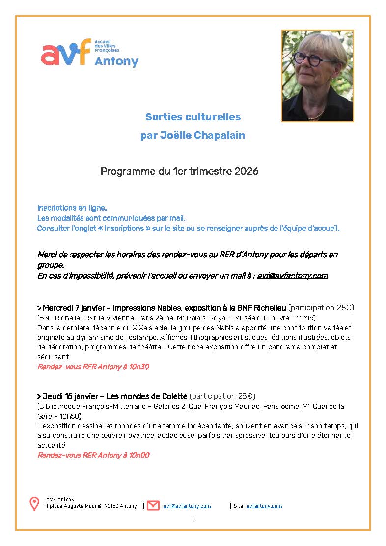 Inscriptions aux sorties culturelles et conférences